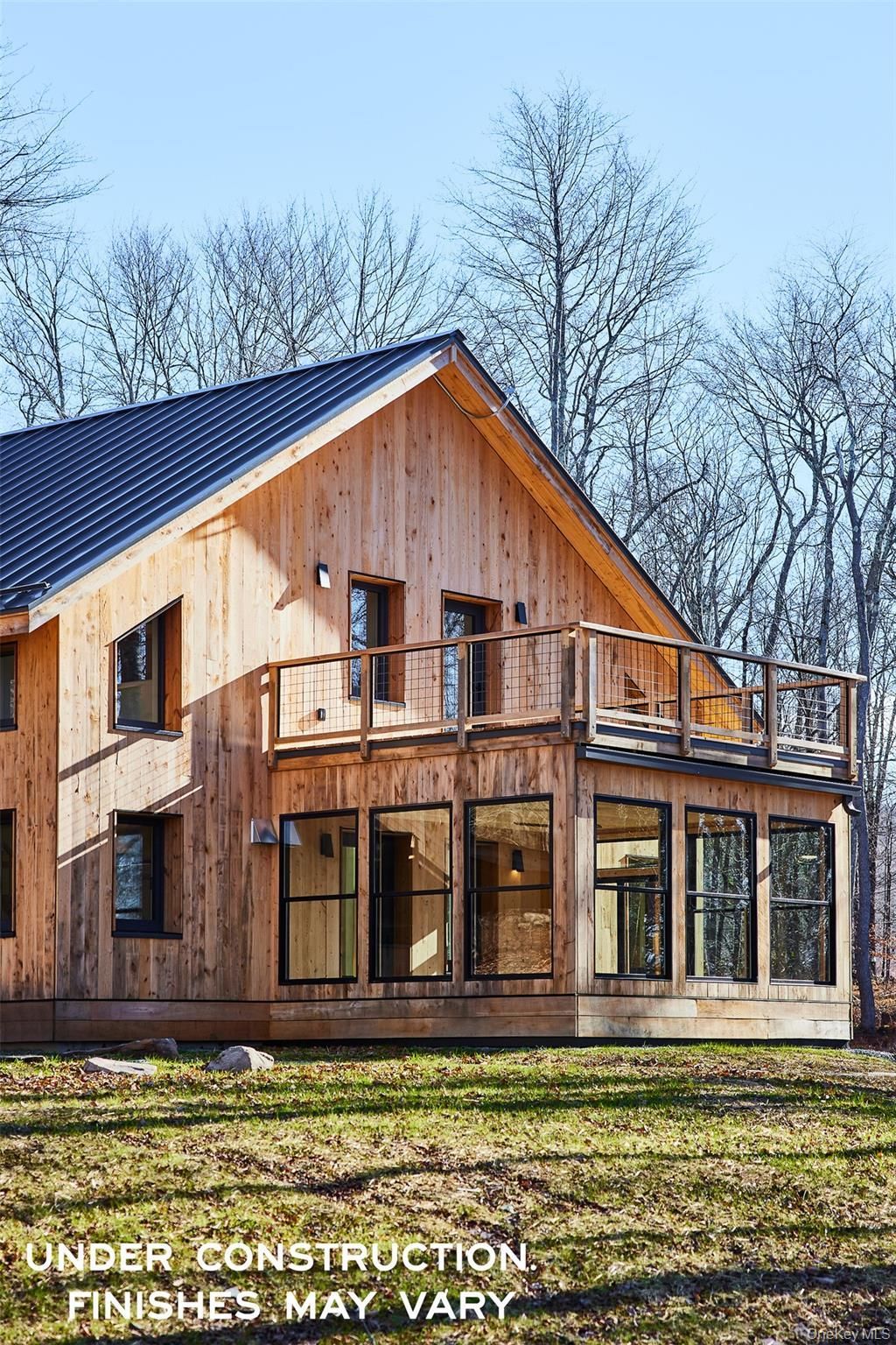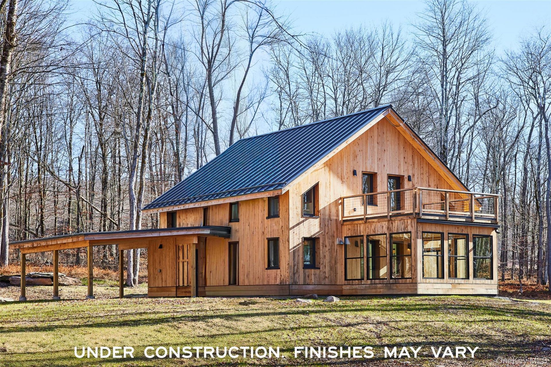 Built to rigorous Passive House standards, Red Hill is a newly constructed 1,738 sq ft, 3-bedroom, 2.5-bath home just minutes from Livingston Manor, nestled within The Catskill Project's 90-acre community. Enjoy the best of the Catskills lifestyle while benefiting from a home designed to support your health, comfort, and well-being for generations to come.Certified to meet both PHIUS (Passive House Institute US) and U.S. Department of Energy Zero Energy Ready Home (ZERH) standards, this all-electric home features a super-insulated, airtight building envelope, triple-pane windows, and balanced heat recovery ventilation that delivers a continuous supply of fresh, filtered air. The result is exceptional year-round comfort, superior indoor air quality, and dramatically lower energy costs than conventional construction. Engineered to exceed code requirements, Red Hill ranks among the highest-performing homes available today - not just in the Catskills, but anywhere. This is a home built to last.An airy, open living space and expansive windows flood the home with natural light while framing beautifully wooded views in every season. The modern kitchen features premium JennAir NOIR appliances and custom cabinetry and flows seamlessly into the adjacent dining area and into a dramatic three-season room, creating an effortless indoor-outdoor experience perfect for dining, lounging, and entertaining. The three-season room comes equipped with a pellet stove, so it will be warm and cozy even in the winter months.Three well-proportioned bedrooms include a generous ground-floor primary suite with en-suite bath, offering privacy and flexibility for guests or a work-from-home lifestyle. The bathrooms feature custom tile work, bespoke vanities, and top-of-the-line fixtures. A second-floor lofted den with soaring vaulted ceilings adds a versatile bonus space - equally suited for movie nights, a yoga practice, or a quiet home office.A large deck adjoins the loft and overlooks your privately wooded lot, while the covered carport provides a welcome entry in any weather. Gather around the bluestone fire pit and enjoy the outdoors across all four seasons. If solar panels are installed, a battery closet is available to keep the house running should the power grid go offline.Step directly from the property onto The Catskill Project's private trails, which wind through a serene 40-acre nature preserve to pristine waterfalls - everything that makes the Catskills truly special, right at your doorstep.Red Hill and The Catskill Project